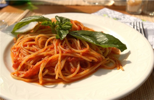 In spite of the appearance, the pasta was actually quite good. Another odd pasta that appeared on the menu is called spaghetti alla carrettiera. The dish consists of pasta with tomato sauce, fresh tuna, two types of mushrooms, and pancetta. It seems like an odd combination, but it’s delicious. Here’s a picture.