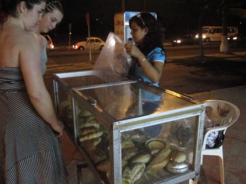 However, one of my favorite parts of the day actually occurs at night. Every evening, the time varies daily, a lady comes up and sets up a mobile bread and pastry box on one street corner located by our hotel. This year she’s become even younger, and even comes with a friend sometimes. Now, they cannot be older than 16. Anyways, that’s not the important part. Her little box appears for a couple of hours on the corner and she sells breads.