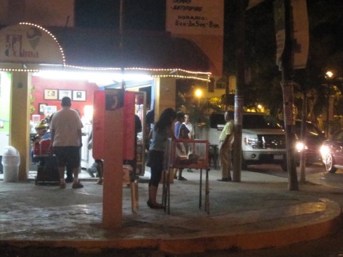 Then, there were the taco stands. So many bloody taco stands. No one, apparently, had learned the lesson of oversaturation of the market. Think back to any fair or convention you’ve been to. There’s always stands offering sandwiches, kettle corn, etc. Sometimes there are multiple stands. Yet, the same food sellers spread themselves out. In this case, there were LITERALLY ten taco stands, each proclaiming they sold the best tacos, within one block of each other. They all sold exactly the same types of tacos that looked to be cooked exactly the same. How an outsider was supposed to pick remains beyond me (we’d already eaten dinner).