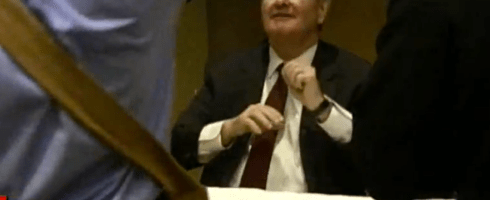 A protestor showered Republican presidential candidate Newt Gingrich with a box filled of confetti during a book signing in Minneapolis today. The man, subsequently identified as Nick Espinosa, approached the Gingriches and shouted “Stop the Hate!” as he showered them with graffiti. He was immediately escorted out of the room by event organizers.