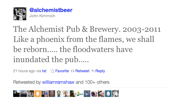 The same cannot be said for The Alchemist Pub & Brewery, which was destroyed in the flooding in Waterbury. Having been to The Alchemist, they are truly wonderful people who make amazing beer. I hope this closing is only temporary.